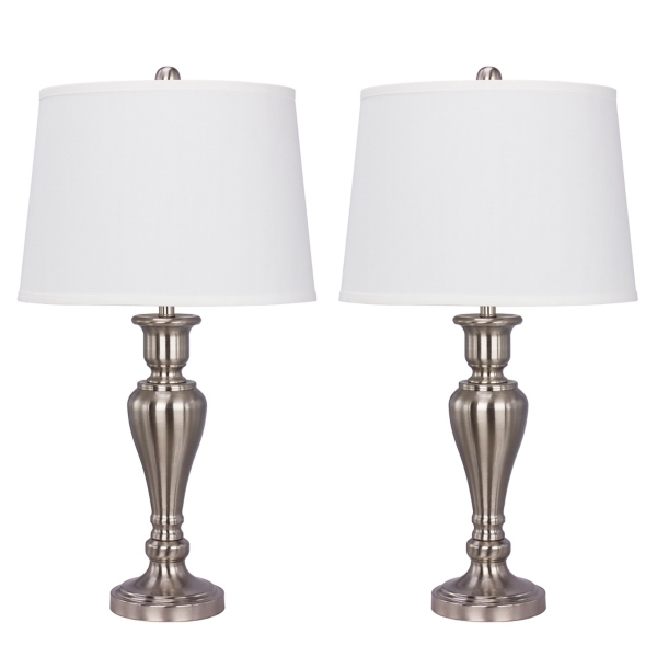 Vienna full spectrum modern table lamp brushed nickel crystal glass rod column white drum shade for living room bedroom bedside. The set of two features a matching design with a down shade in a clean, brushed nickel finish. Table lamps, small lamp shades, table lamps for bedroom, table lamps for living room, rustic table lamps. Uttermost table lamp in brushed nickel. Shop vanity lights and a variety of lighting & ceiling fans products online at lowes.com. Can brushed nickel table lamps be returned? Studio 3b led desk lamp in brushed nickel with usb charging station. Save now with 0% off pikes ivory, taupe and brushed nickel one light table lamp. Free shipping on orders over $39. 360 lighting modern table lamps set of 2 with usb charging ports brushed nickel white square shade for living room bedroom bedside 360 lighting 4.5 out of 5 stars with 2 reviews Get it as soon as thu, mar 25. 360 lighting modern table lamp ribbed glass brushed nickel accents white drum shade living room bedroom bedside nightstand office 360 lighting $54.95 reg $79.99 4.8 out of 5 stars 23.