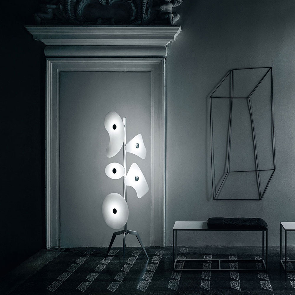 Manufactured in italy and designed by the famous ferruccio laviani in 1992 for foscarini, the lamp is sculptural and enticing with its multitude of dimensions.