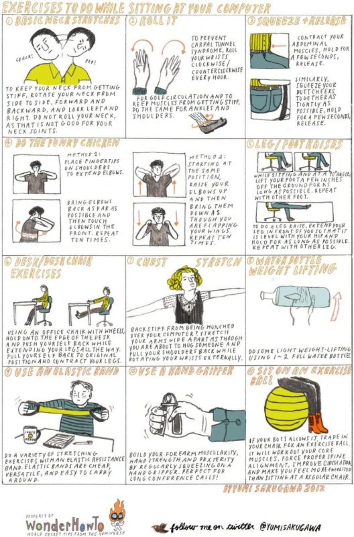 It is almost like a wall sit position, but you are in your chair. So here are some exercises which can be done right at your workplace, sitting on your chairs. By nathaniel fried january 17, 2019, 8:25 pm Do this for 10 to 20 minutes at a time, and then return to your desk chair, to avoid injury from overworked muscles. It improves your balance, tones your core muscles and takes stress off your lower back.